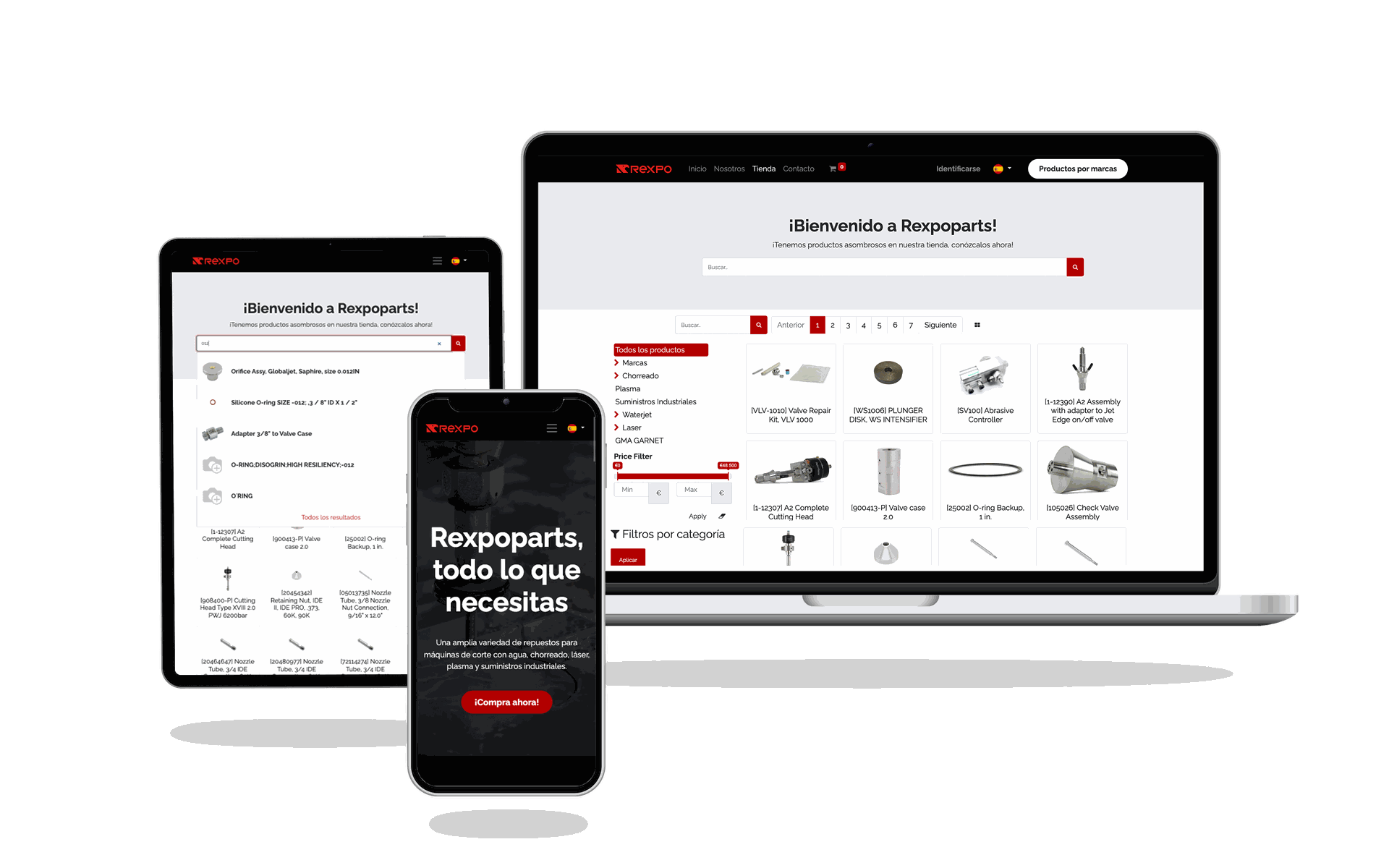 La tienda online de Rexpo, donde podrás encontrar los repuestos de mayor calidad para máquinas de corte con agua, chorreado, láser, plasma y suministros industriales.